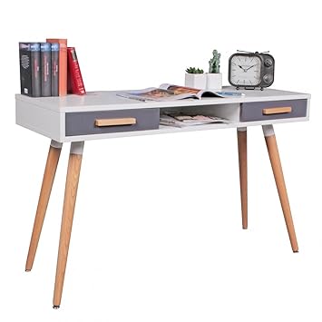 Schreibtisch Scanio Mdf Retro Holztisch 120cm Breit Schubladen Weiss Buro Tisch Design Skandinavisch Computertisch