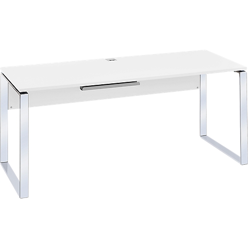 Schreibtisch Nizza Mit Kabeldurchlass Kufengestell B 1800 Mm Weiss Matt