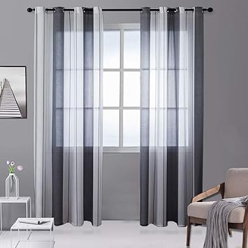 Hetaida Voile Vorhang Transparente Gardine Osen Schlaufenschal Osenschals Transparent Streifen Fensterschal Wohnzimmer Schlafzimmer Vorhang