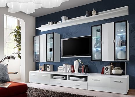 Wohnwand Lyon Uno Pinie Weiss Nachbildung Wengenachbildung