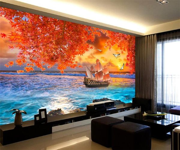 Grosshandel Gluck Boot Leaft Herbst Meer Fototapete Tapete Fur Wohnzimmer Schlafzimmer Wand Papier Haus Wand Dekor 3d Tapeten Tapeten Von Beibei168