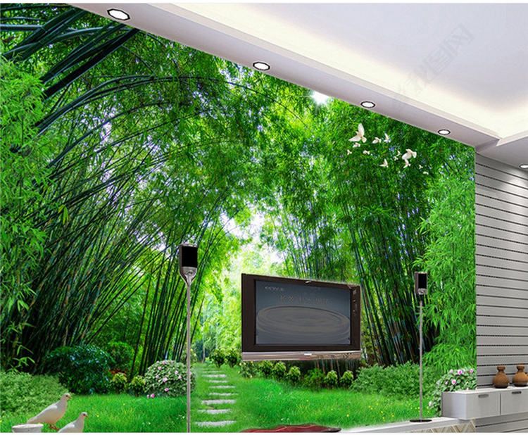 Photo Wallpaper 3d Living Room Tv Sofa Plant Leaf Feather