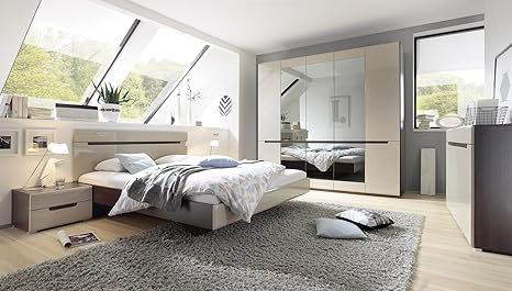 Eiche braun creme hochglanz. Home affaire schlafzimmer set modesty i bestehend aus einem 140 cm bett 3 turigem schrank wahlweise mit spiegel oder ohne und 2 nachttischen. Schlafzimmer set mit sanftem facetten reichtum und tollen extras.