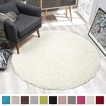 Details Zu Teppich Rund Hochflor Teppich Schlafzimmer Wohnzimmer Buro Modern Creme 120cm