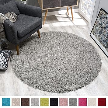 Sanat Teppich Rund Hellgrau Hochflor Langflor Modern Teppiche Furs Wohnzimmer Schlafzimmer Esszimmer Oder Kinderzimmer Grosse 120x120 Cm