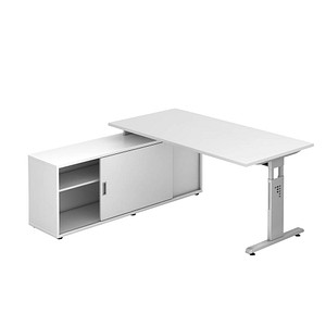 Pc Schreibtisch Rechts Hohenverstellbar C Fuss Blende Optional 1600x1000x680 820 Weiss Silber