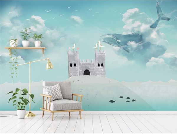 Grosshandel Schloss Fur Jungen Madchen Schlafzimmer Tapete Wandbild Fur Wande Blauer Himmel Whale Vogel Tapeten Wohnkultur Fur Kinderzimmer 3d Tapete