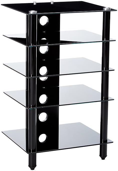 Pta Gts6bc 600mm Soporte Av Con 4 5 Estantes De Vidrio Y Piernas Cromadas Color Negro