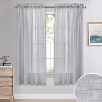 Gardinen Schals In Leinen Optik Leinenstruktur Vorhange Schlafzimmer Halbtransparent Vorhang Fur Kleine Fenster Solid Sheer Grau Kurz 2er Set Je