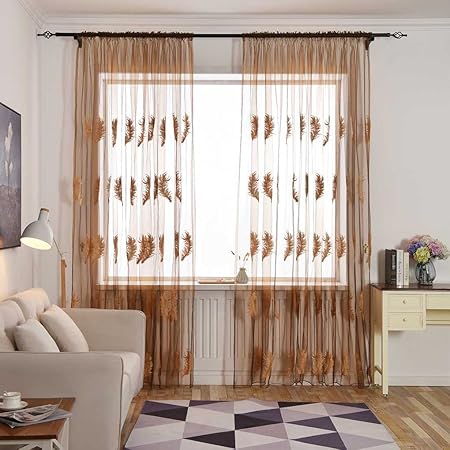 Amazon De Sunlera Feder Gestickte Voile Vorhange Fur