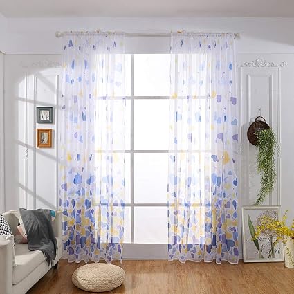 Winomo Transparente Voile Vorhange Gardine Schal Dekoschal Fur Schlafzimmer Wohnzimmer Blumen Druck 100x270cm Grun