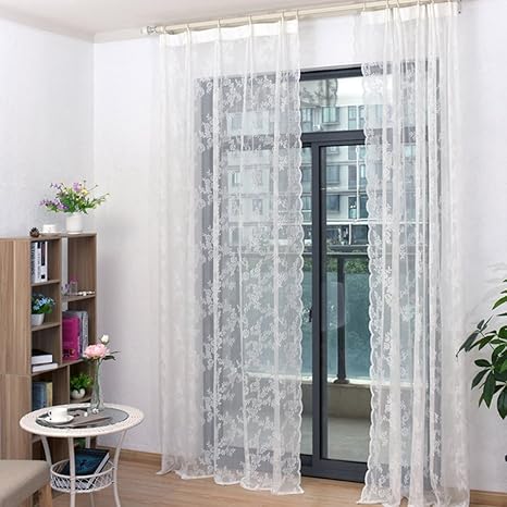 Chinatera Floral Tull Fenster Gardine Fuer Wohnzimmer Schlafzimmer Weiss