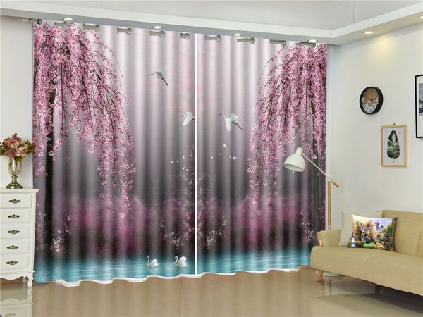 Grosshandel Fantasie Swan Lake Pink Blumen Baum 3d Landschaft Vorhange Wohnzimmer Schlafzimmer Schone Praktische Blackout Vorhang Von Yunlin188