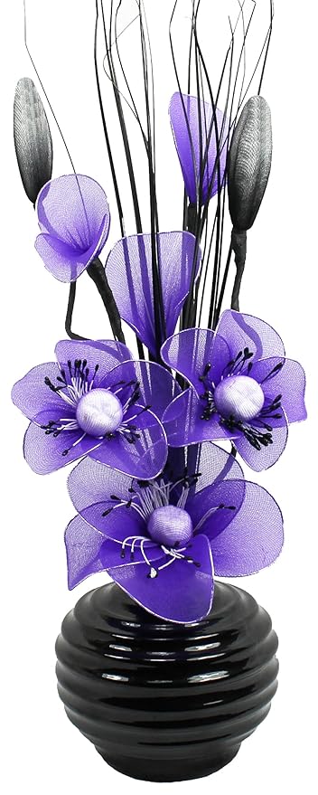 Lila Kunstliche Blumen Mit Schwarz Vase Deko Wohnaccessoires Deko Geeignet Fur Bad Schlafzimmer Oder Kuche Fenster Regal 32cm