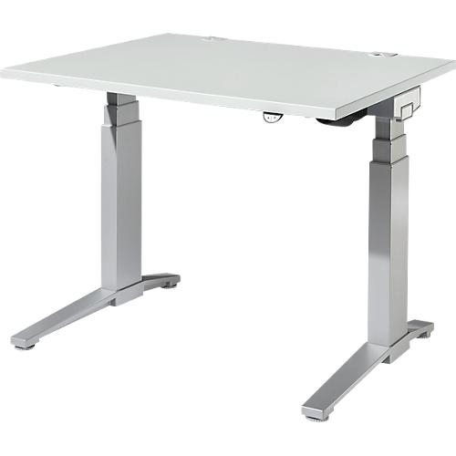 Schreibtisch Planova Ergostyle C Fuss Rechteck Zweistufig Elektr Hohenverstellbar B 1200 Mm Lichtgrau Weissalu