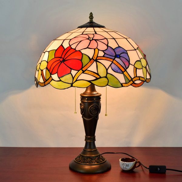 Grosshandel 16 Zoll Fleisch Land Blumen Tiffany Tischlampe Landhausstil Glasmalerei Lampe Fur Schlafzimmer Nacht E27 110 240 V Von Yuancao 290 62 Auf