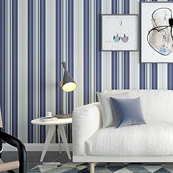 21x394inch Blau Und Weiss Gestreifte Vlies Wandtapete