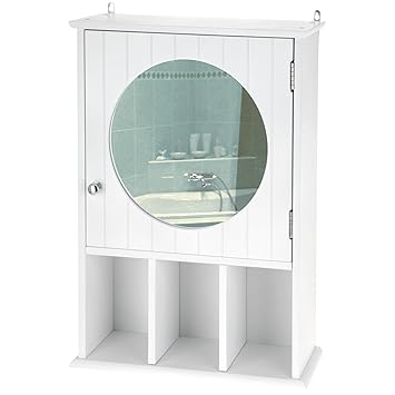 Costway Spiegelschrank Bad Badezimmerspiegelschrank Weiss Wandschrank Mit Spiegel Hangeschrank Holz Badezimmerspiegel 65x62x11 5cm