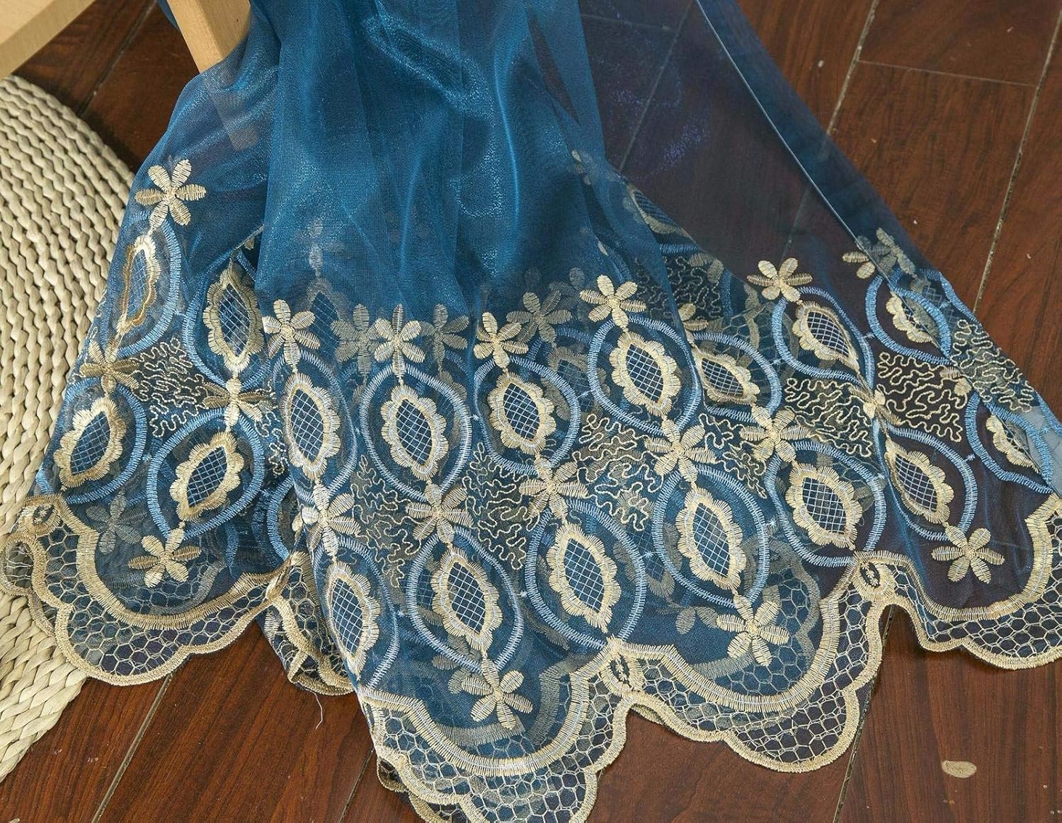 Grosshandel 3d Stickerei Blume Vorhange Tull Blau Garten Baumwolle Leinen Vorhang Fur Wohnzimmer Schlafzimmer Boden Fenster Schatten Vorhang Gaze Von