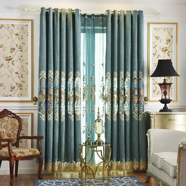 Grosshandel Im Europaischen Stil Wohnzimmer Schlafzimmer Vorhang Edlen Blau Grun Chenille Stickerei Vorhange Benutzerdefinierte Fertigen Gewebe