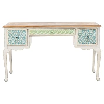 Wohnling Konsolentisch Lina Massivholz 130x79x40 Cm Schreibtisch Shabby Chic Design Schminktisch Mit Schubladen Bunt Konsole Holz Massiv Vintage