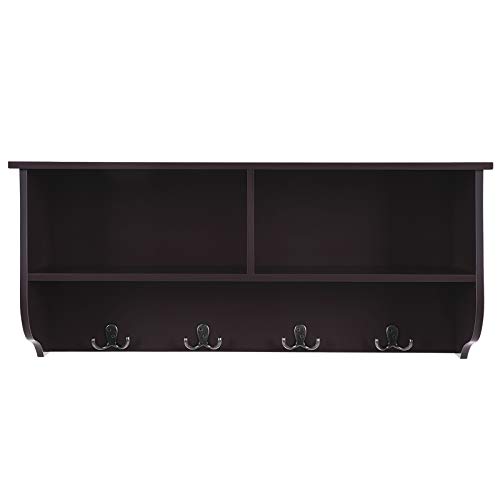 Vasagle Wooden Entryway Hanging Coat Rack With Cubby And 4 Dual Coat Hooks Wall Floating Shelf Space Saving Storage Shelf Espresso Ules02br