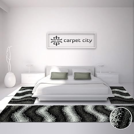 Bettumrandung Shaggy Design Teppich Laufer Hochflor Langflor Mit Wellen Muster Fur Schlafzimmer In Schwarz 3 Teilig Laufer Grossen 2x 80x150 Cm 1x